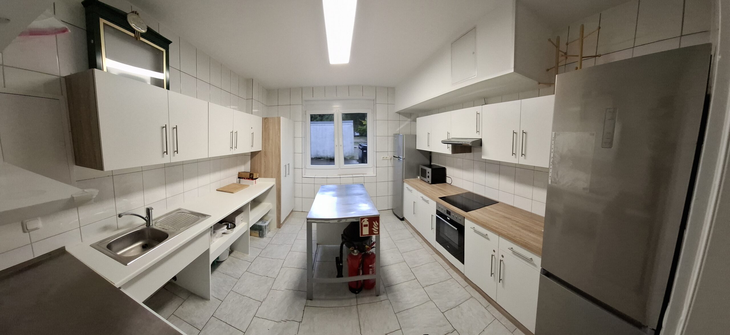 • Komplette neue Küche mit Geschirr und Besteck für 60 Personen