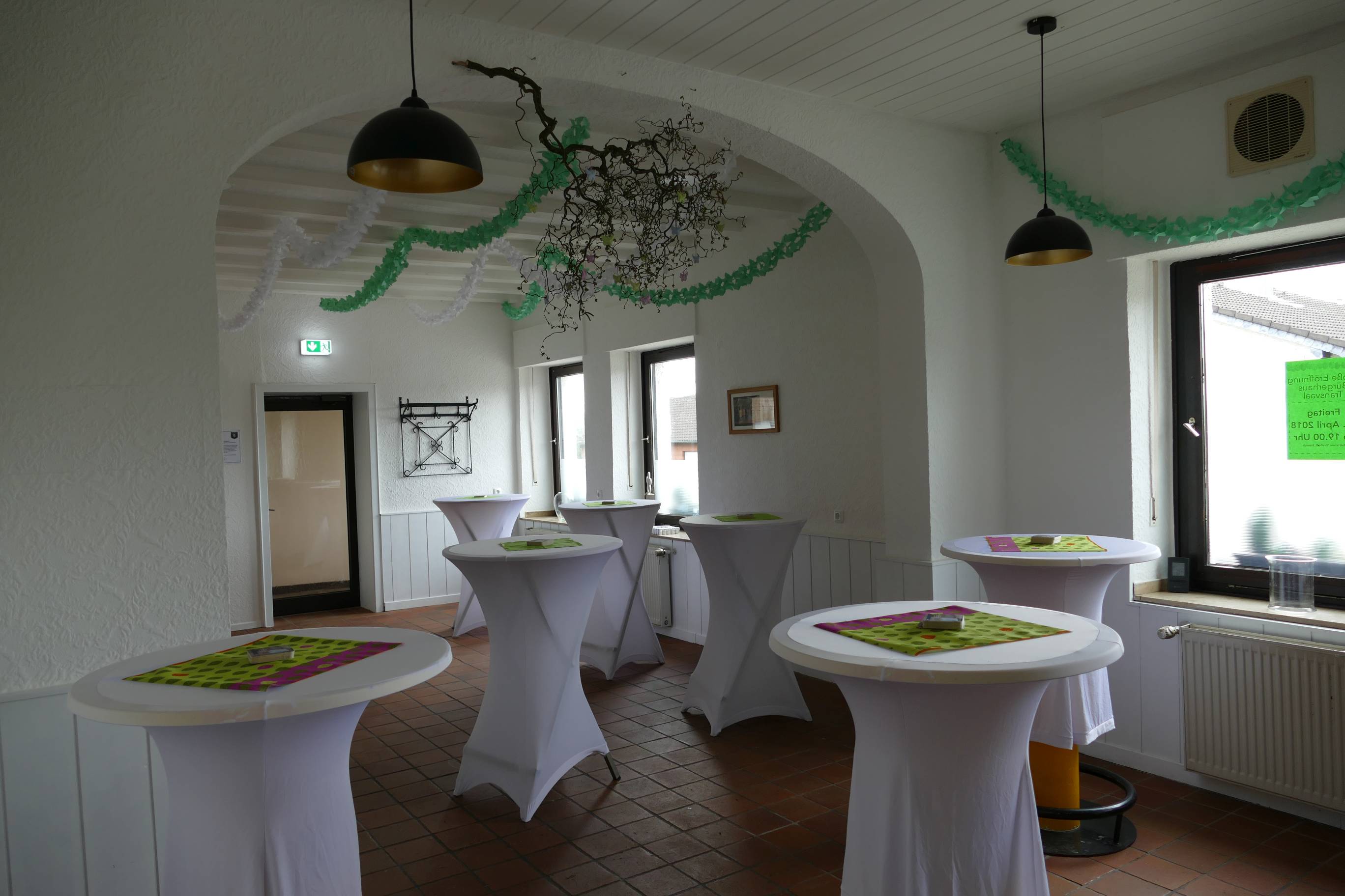 Ob Geburtstag, Taufe oder Betriebsfest, das Bürgerhaus Transvaal ist der ideale Ort für jede Gelegenheit! Vereine, Interessensgruppen oder Freunde können das Bürgerhaus auch stundenweise mieten. Regelmäßige Belegungen sind ebenfalls möglich.